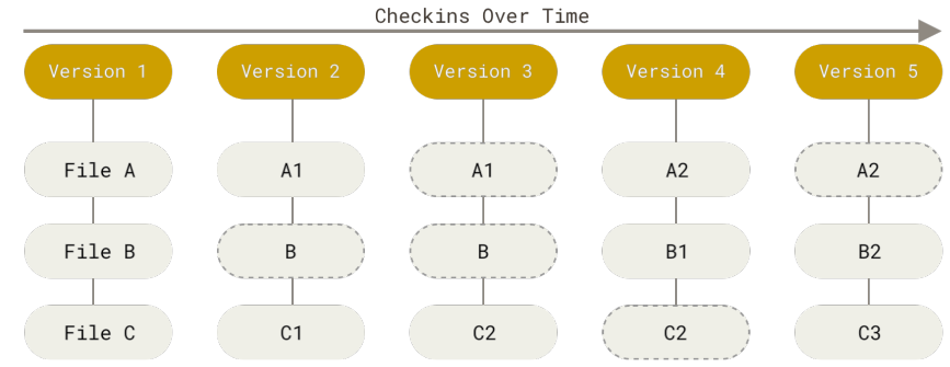 Git 将所有数据都抽象为 快照流 (Streams of Snapshots)。和其他版本控制系统基于增量的模型不同。