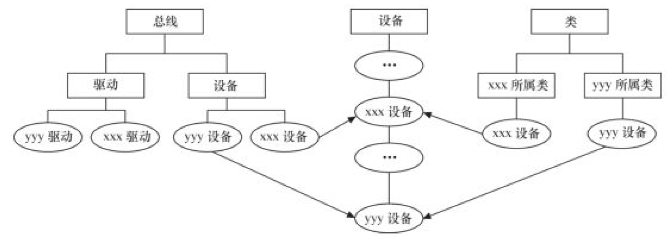 从代码分析的角度看,struct bus_type 定义总线,struct device_driver 定义驱动,struct device 定义设备,struct class 定义类。驱动和设备是分开注册的,依靠 bus_type 的 match() 函数将两者绑定到一起,一旦配对成功,xxxx_driver 的 probe() 函数就被执行(xxxx 是总线名,如platform、pci、i2c、spi、usb等)。