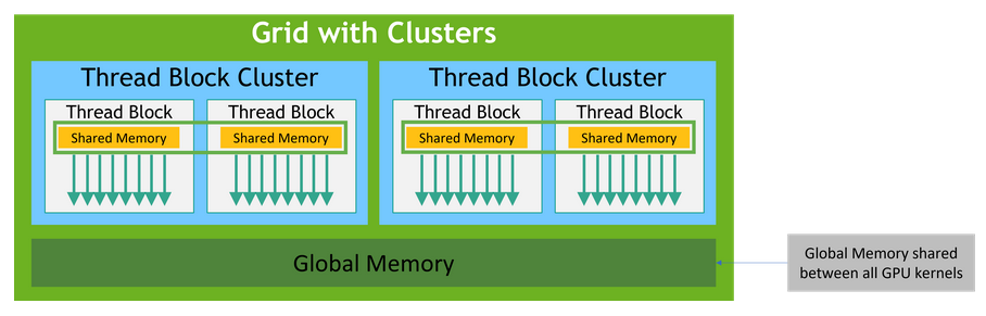 所有线程块并行执行,并且执行顺序是任意的,也就是线程块之间不能存在逻辑上或者数据上的相互依赖。每个线程块中的线程虽然也是并行的,但可以访问共享内存(使用__shared__声明标示符),并可以使用__syncthreads() 函数进行同步。