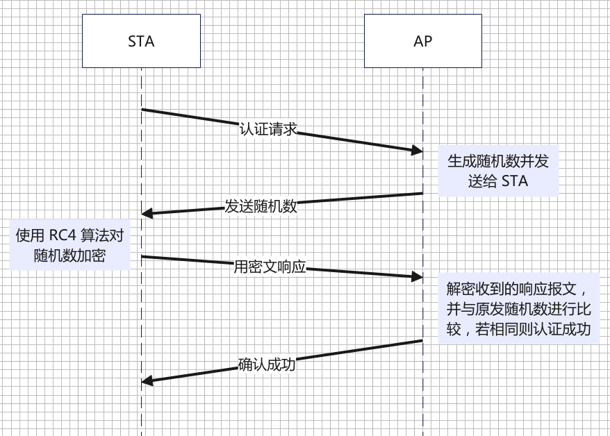 802.11b 支持开放系统认证(open system authentication) 和 共享密钥认证(shared key authentication)。开放系统认证,也就是无认证。