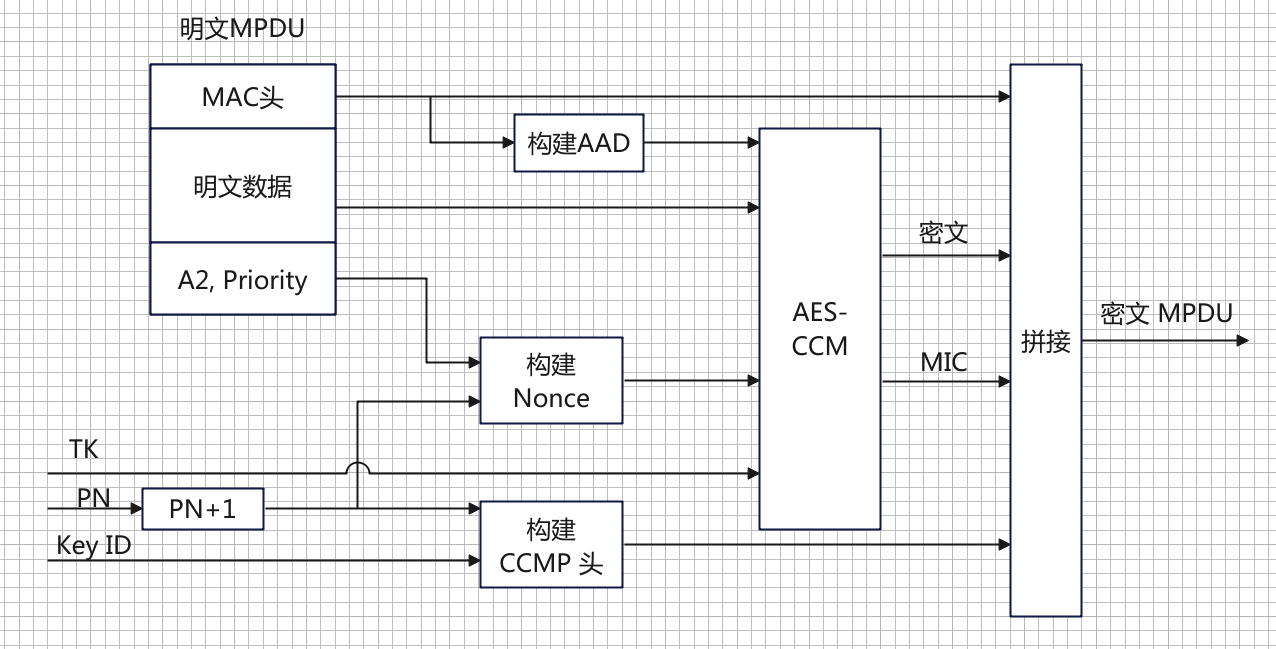 - 动态变换密钥。在 TKIP 中,每个 STA 与 AP 进行通联时,会使用动态生成的临时密钥 TK。这个临时密钥通过将特定的会话内容与 AP 和 STA 生成的一些随机数以及 AP 和 STA 的 MAC 地址进行哈希运算来产生。